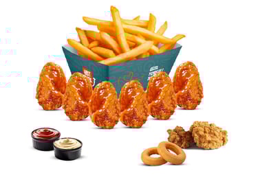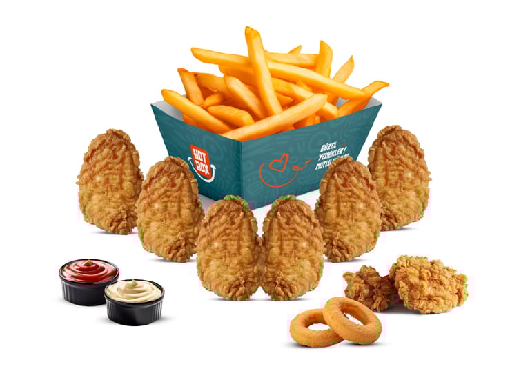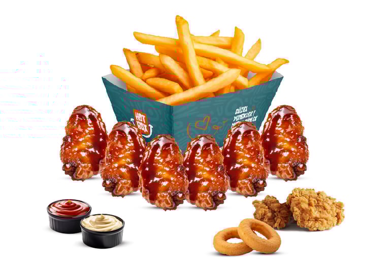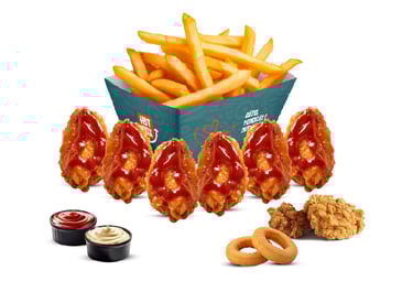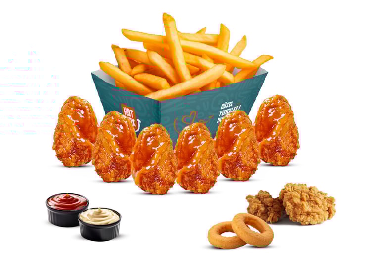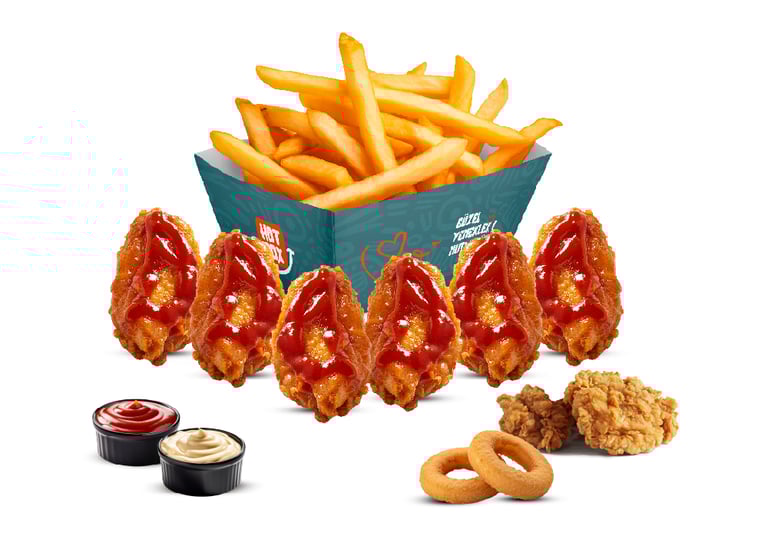 6 Kanat + Patates Kızartması + 2 Bites + 2 Soğan Halkası + Ketçap + Mayonez